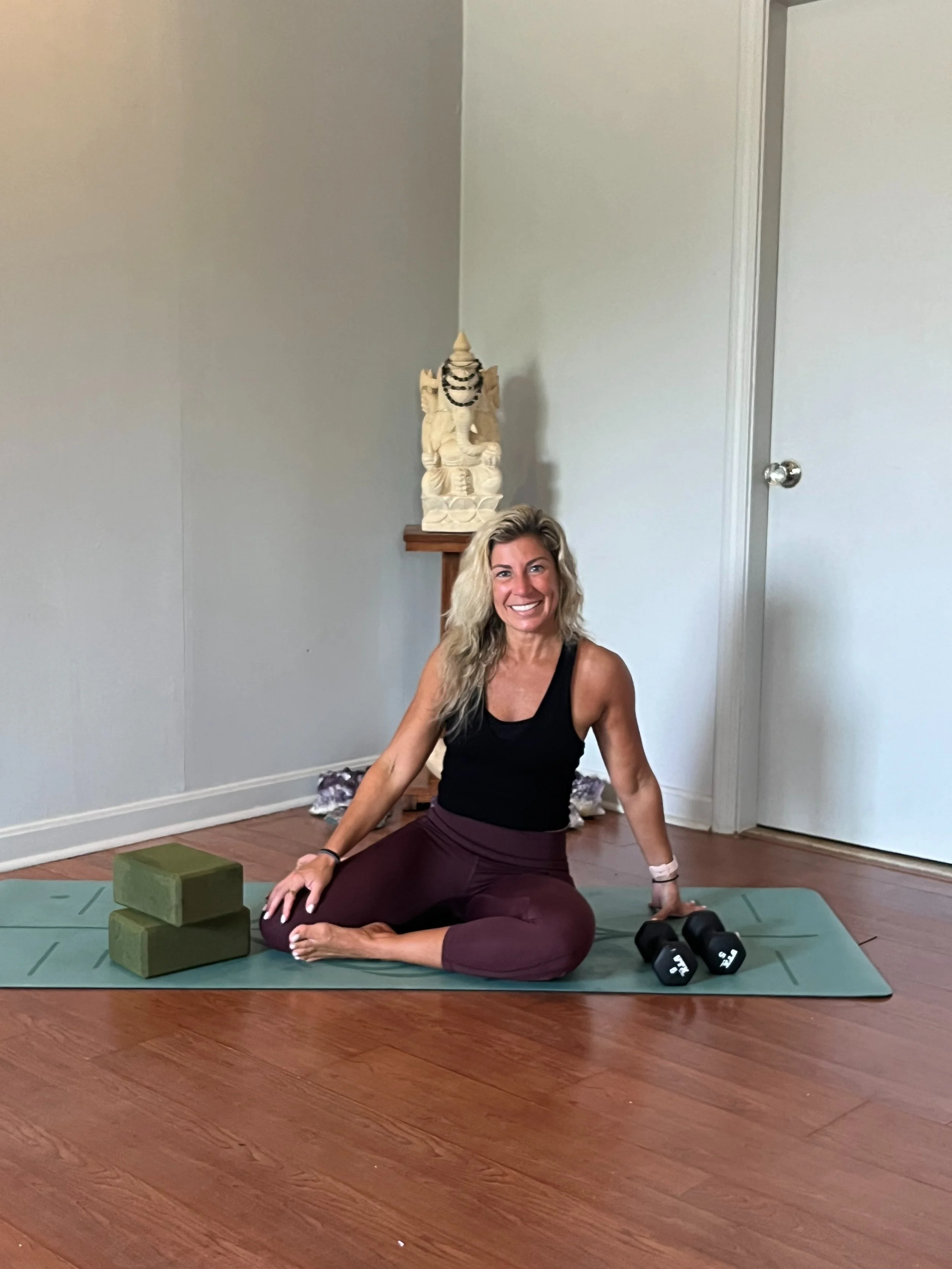 Pamela Simas began her teaching journey in 2012 as a certified group fitness and indoor cycling instructor before completing her 200-hour Fluid Yoga Teacher Training in 2016 and Yoga Sculpt Teacher Training in 2024. She now leads classes in Fluid Vinyasa, Yoga Sculpt, Gentle, and Restorative yoga, offering students practices that link breath with movement to reduce stress, build strength, and nurture inner calm.